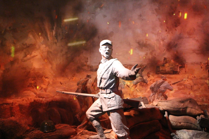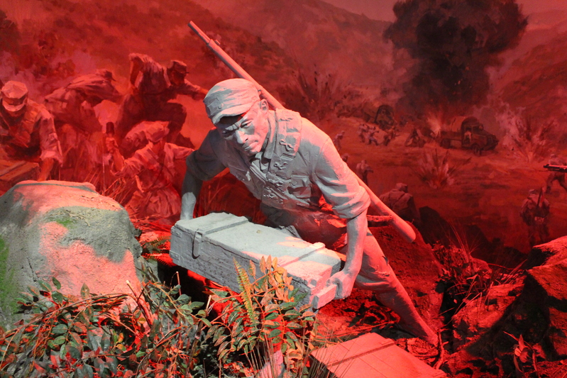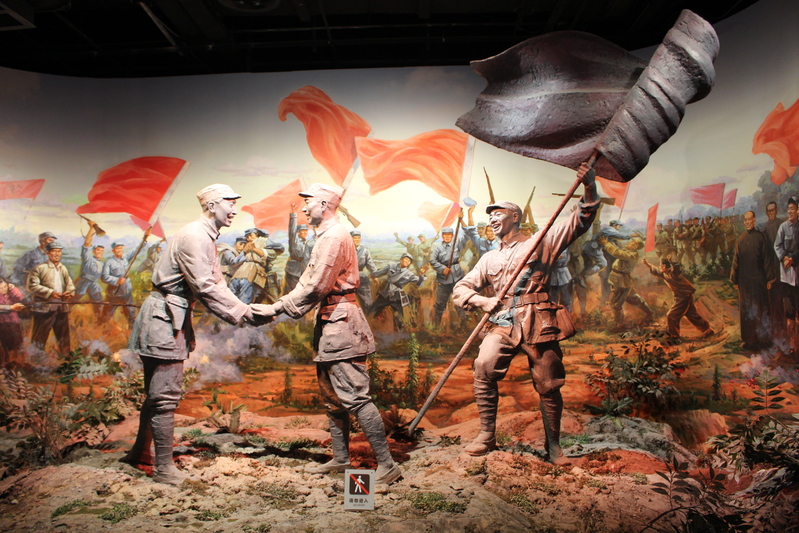 拾级而上,展厅门楣上悬挂着李先念题写的“国民革命军新编第四军重建军部纪念馆”金字匾额,烨烨生辉,夺人眼目。在近5000平方米的展览大厅内,运用声光电等现代化展示手段,再现了新四军十四年抗战、十年征程的烽火岁月。
