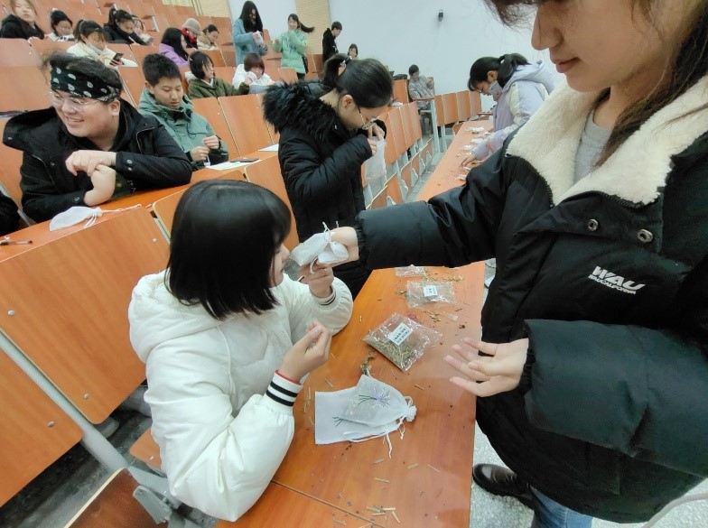12月7日下午,304永利A200教室里传来了一阵阵欢声笑语和热烈的鼓掌声,由304永利青年志愿者协会和中药养生协会联合举办的“香包大作战”活动正在如火如荼的举行,活动通过竞答和现场香包制作两个环节大大加深了同学们对中药材的认识,当传承千年的中草药装进中国民间传统的香包中,一个个由同学们亲手DIY的精美香包就诞生了,选手们分别上台介绍自己所制香包的香味、功效及创意。