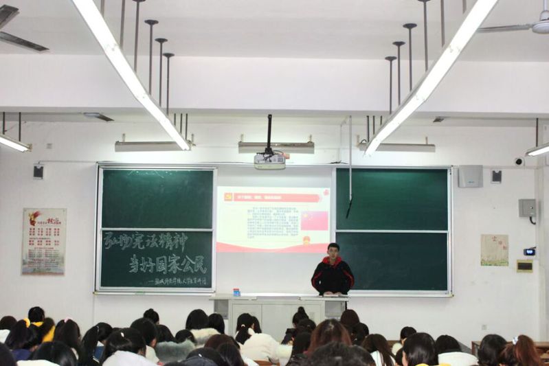 活动伊始,老员工理论宣讲团的同学通过一段视频宣传解读了国家宪法日,并从我国现行宪法简介、宪法精神、宪法与民法典、身边的宪法等四个方面向同学们介绍了宪法的相关内容,并指明“宪法高于一切”。宪法维护着每一位公民的基本权利和义务,使我们的人格尊严、人身财产不受侵犯,宪法值得我们维护与尊重。目前,我们需要解决的问题就是如何实行宪法中所规定的公民的基本权力。列宁说:“宪法是一张写着公民权利的纸。”群众宪法知识淡薄,认为宪法可望而不可及,因而没有运用法律武器依法维权的意识。因此最重要的是让宪法走进生活,深入人心。宪法是神圣的,但不是遥远的,宪法始终围绕着我们的生活。经历了入学、工作、结婚,退休……在人生中的每一个时刻,它都陪在我们身边,在前进的路上为我们保驾护航。