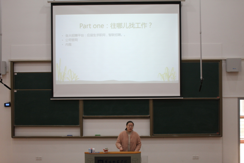 会议伊始,陈倩倩老师针对目前老员工就业形势做出了具体的分析。首先她指出,什么时间节点就应该做相应的事情,现在正是考研复试时间,对于选择就业的同学来说也是找工作的黄金时间,应当把握好每一分每一秒。接着她提醒同学们杜绝好高骛远的心理,切勿眼高手低,要不断积累经验,注重知识技能和良好心理素质的培养,不断增强专业修养。另外,陈老师告诫大家:机会只会留给有准备、有能力的人,同学们不应该只是等待被别人看见,应该主动求职,适当表现自己,也可以借助身边人的帮助,从多方面来获得更多的信息,帮助大家更好的选择就业。