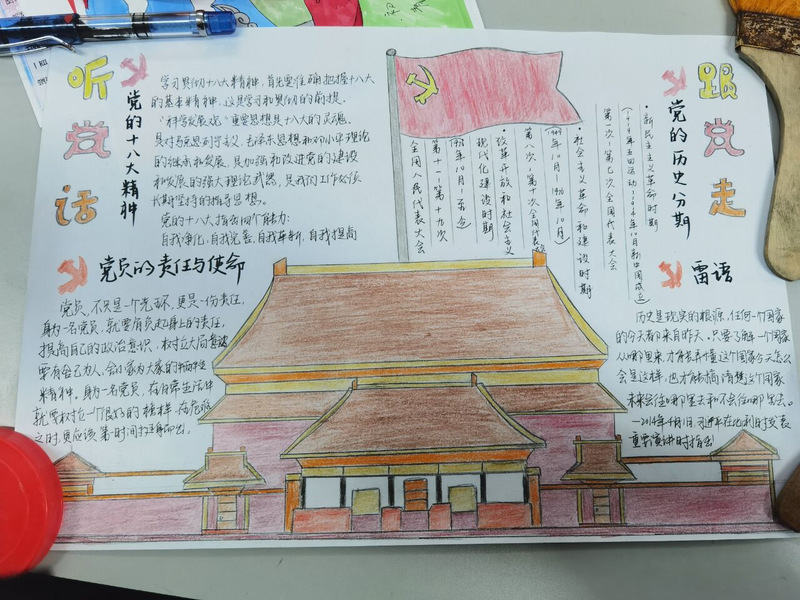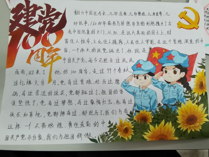 活动期间同学们积极参加,为我们呈现了各式各样的精彩作品,充分体现出同学们爱党爱国的强烈情感。活动结束后,经过精心筛选选出了不少的优秀作品供同学们欣赏195班石晓静、205班何莹、205班吴思洁、205班李琳、195班王孟洁206班顾小义的作品脱颖而出,下面就让我们一起来看看吧!