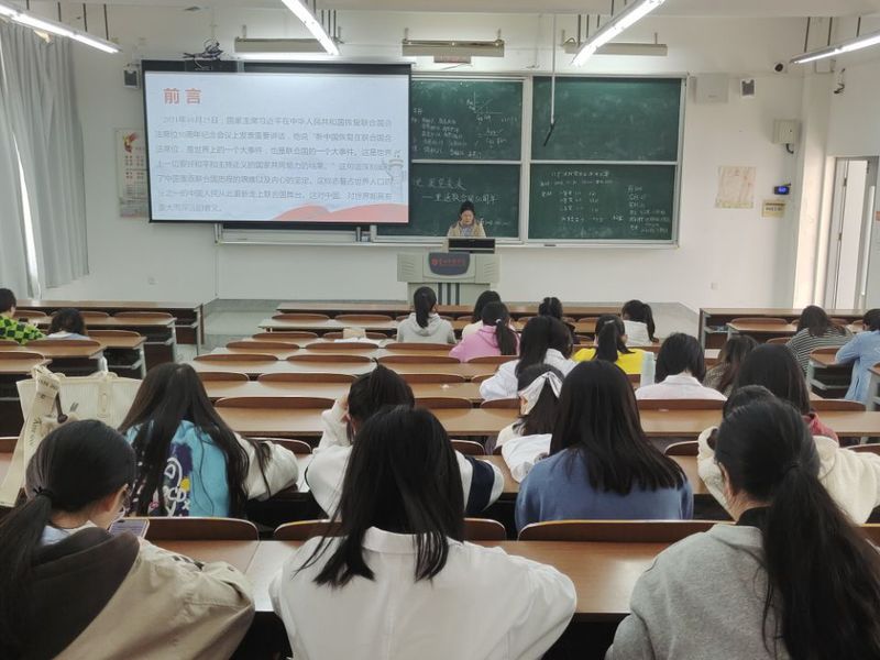 本次活动各团支部组织学习习近平主席在中华人民共和国恢复联合国合法席位50周年纪念会上的重要讲话精神,并观看第26届联合国大会以压倒性多数通过第2758号决议的视频和相关新闻报道。团总支助理王欣表示,通过本次团日活动让同学们将维护国际公平正义牢记心间,对维护世界和平有了新的认识。作为共青团员要学习前辈敢于反抗,勇于发声的精神,为强国建设添砖加瓦。