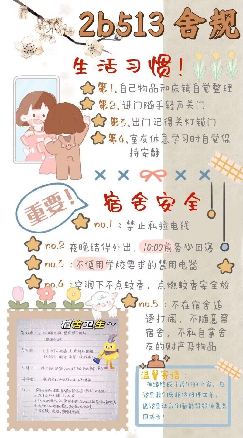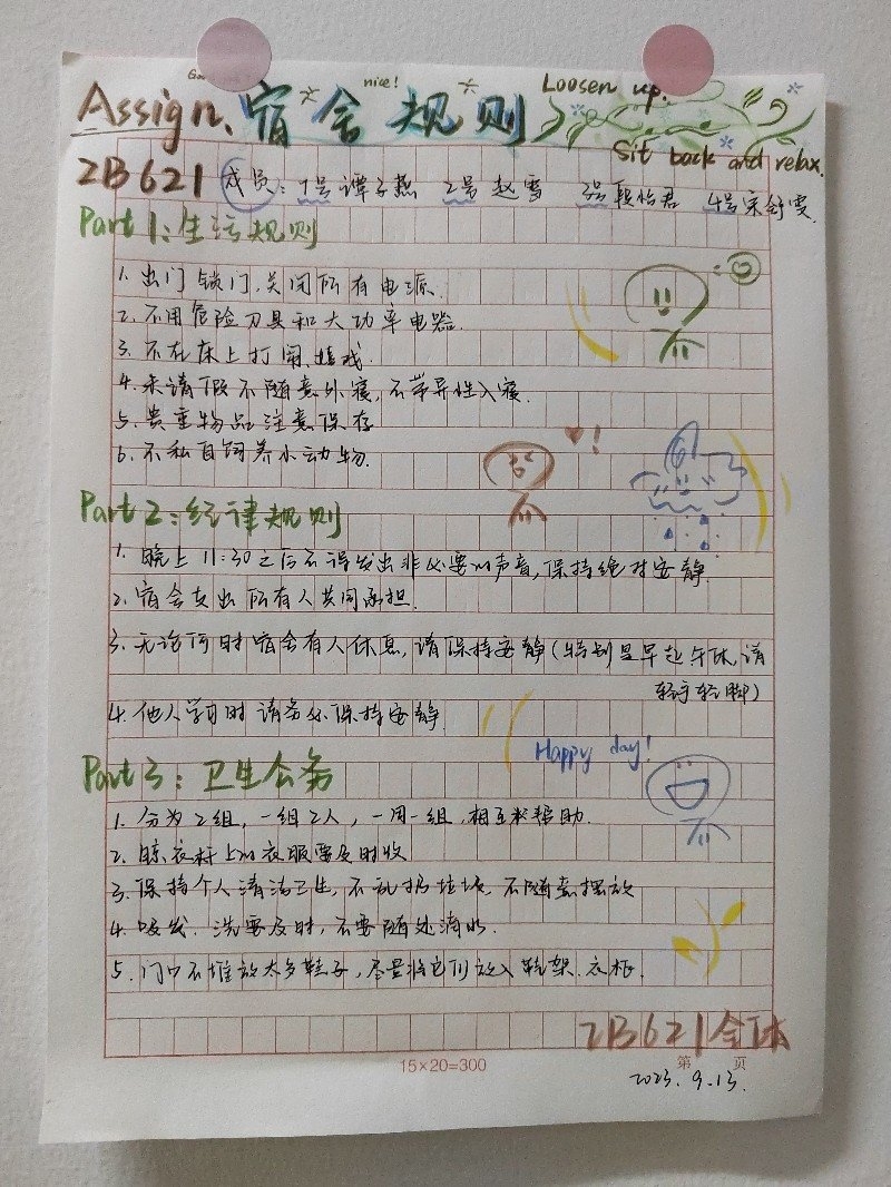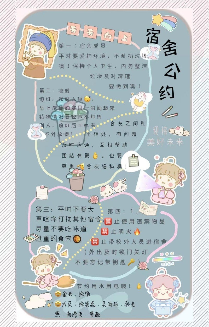 此次活动以宿舍为单位,304永利23级员工全体参加,通过文字、海报、绘画等形式完成舍规,并由班级学干担任评委。此次活动提醒员工们养成良好的生活习惯并提高宿舍管理的意识。304永利将继续加强宿舍管理工作,营造更好的学习生活环境。
