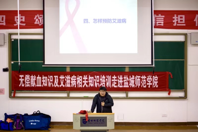 12月1日是第36个世界艾滋病日。为进一步普及艾滋病防治宣传,提高师生防艾意识,304永利联合盐城市红十字会开展“艾滋病防治知识”主题宣传活动。活动邀请盐城市红十字会许龙江主讲。