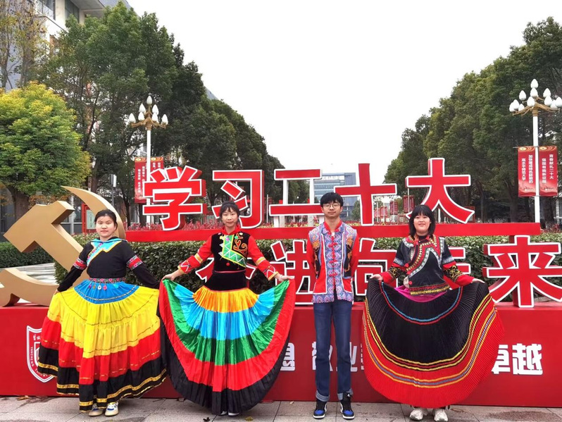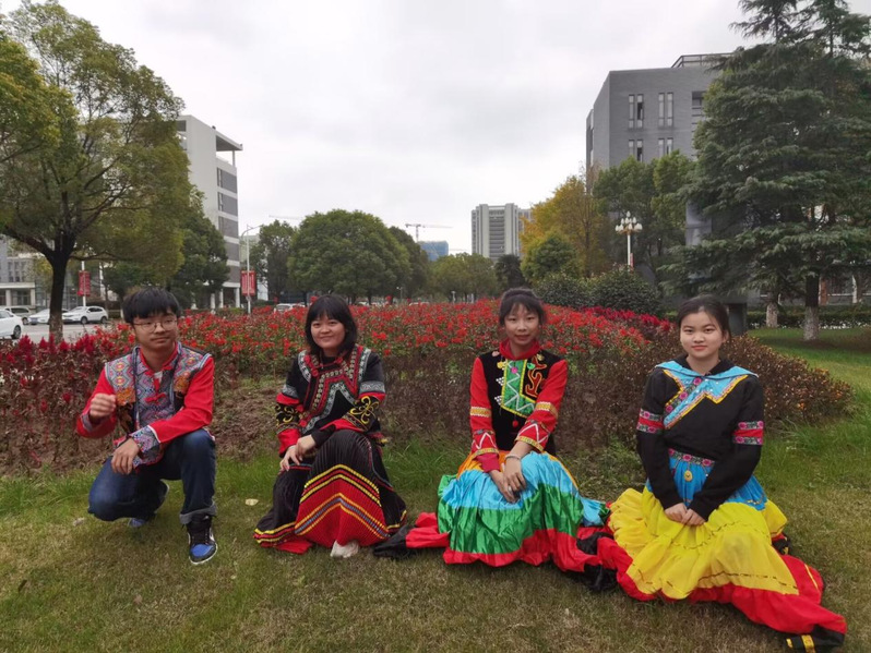 11月21日中午,304永利组织本院各民族员工在美丽的校园里举办了“民族团结一家亲”风采展示活动。在敬贤桥边、银杏树下,各民族员工身着本民族服饰,携带本民族的特色物件,向大家介绍自己的民族风情以及物件的历史渊源。本次活动吸引了校园内各学院员工广泛参与,将同学们的注意力从教室转移到户外,让同学们在大自然中领略到了自然与民族风情的交融之美。