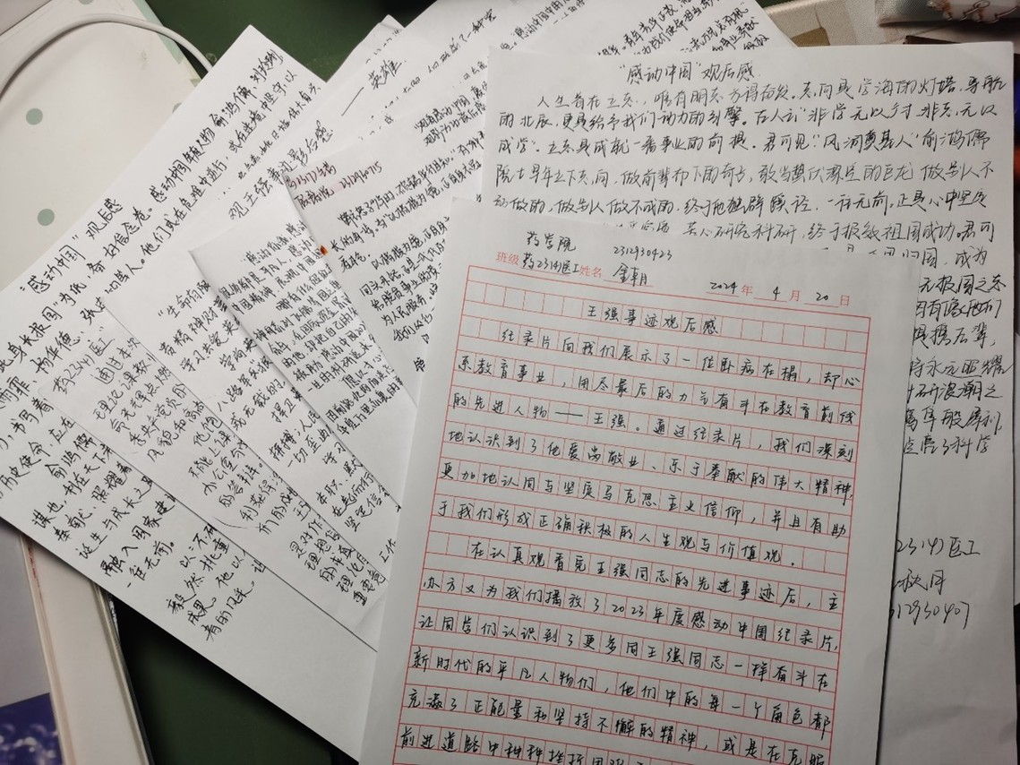 活动中,同学们观看了王强同志的先进事迹以及2023年度感动中国人物纪录片,学习国人以己之力,赓续红色精神的感人事迹。无论是“感动中国”获得者还是王强同志,他们的一瞬辉煌、一生奉献,都令人动容、敬佩。活动结束后,同学们深有感触,陆续写下观后感,作为即时的感悟与启发。