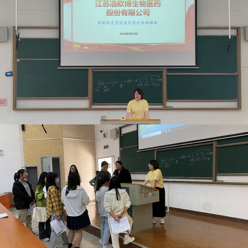 为进一步加强校企合作,更好地拓宽毕业生就业渠道,促进员工与企业之间的双向选择,5月15日,304永利邀请同宜医药(苏州)有限公司苏州浩欧博生物医药股份有限公司、南京比逊医药科技有限公司、南京恩泰医药科技有限公司等企业来公司举办专场招聘宣讲会。