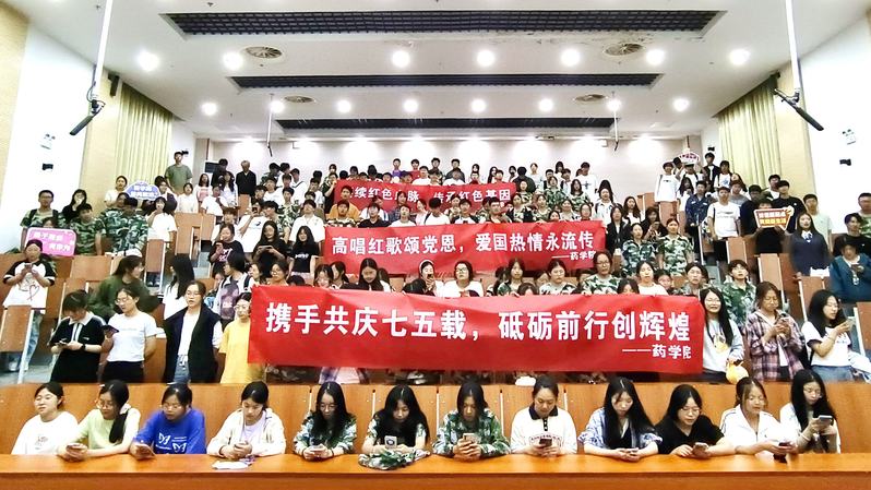 药24(5)生药班陈亿:唱红歌饱含了我们对祖国的热爱。每次唱响《义勇军进行曲》,我的心中都会涌起一股强烈的民族自豪感和浓浓的爱国情怀。这些歌曲如同号角,吹响了时代的强音,激发了我们为祖国的繁荣富强贡献力量的决心和信心。