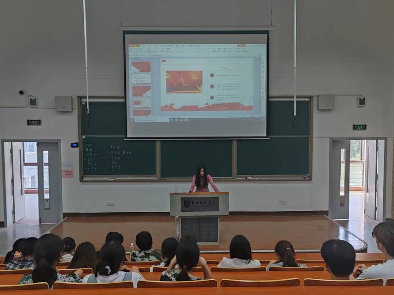 22(6)班于佳文同学用声情并茂的语言带领大家重温了新中国从站起来、富起来到强起来的腾飞故事,令人振奋、催人奋进。部分参与者分享了他们在今年暑假投身社会实践的青春故事,用实际行动诠释了新时代青年的责任与担当!