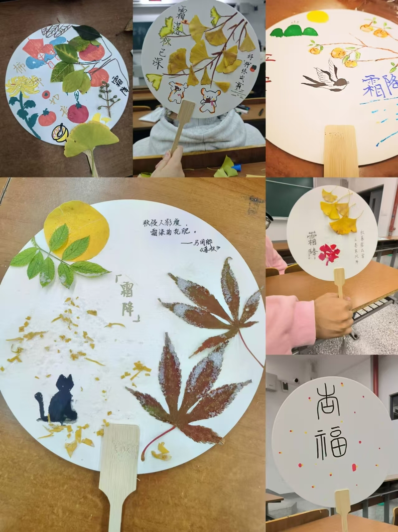 霜降作为季节的转折点,不仅标志着秋季的深入和冬季的临近,更承载着丰富的文化内涵和民俗传统。此次“古韵摇曳,手绘团扇”主题活动不仅锻炼了同学们的动手能力,丰富了同学们的校园文化生活,也进一步增强了他们对传统文化的认识和热爱。