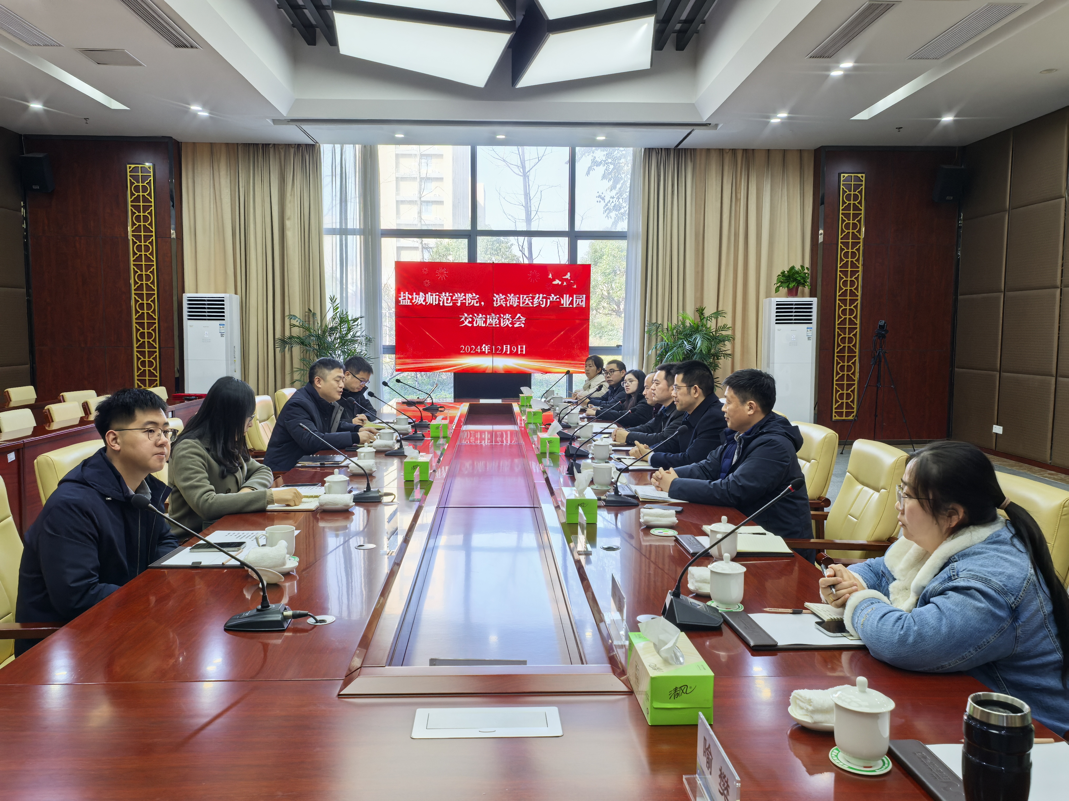 座谈会上,江苏滨海医药产业园管理办公室副主任赵云对徐华一行表示热烈欢迎,并介绍了产业园的发展概况,指出双方要在人才培养、成果转化、员工就业等方面加强合作。徐华指出,双方在就业育人、科研攻关等方面都有广阔的合作空间,希望双方深化合作,充分发挥各自的技术优势、人才优势、资源优势,全面强化在人才培养、科学研究、平台建设等领域的合作。