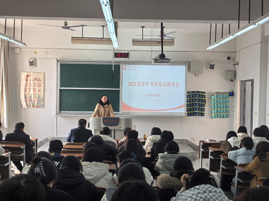 陈倩倩分析了当前严峻的就业、考研形势和复试过程中常见的认识误区,希望同学们珍惜机会、能上尽上,脚踏实地,迅速进入状态;认真准备、坚持到底,多方联系,努力做到信息灵、情况明;鼓励同学们解放思想、走出误区,切忌犹豫,正确认识复试及调剂的重要性。