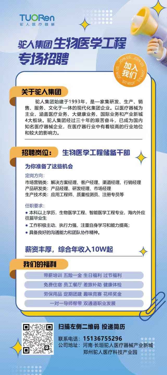为扎实做好2025届毕业生就业服务工作,助力毕业生实现高质量充分就业,5月22日,驼人集团应邀来公司举办生物医学工程专场招聘会,部分2025届意向毕业生参加了此次活动。