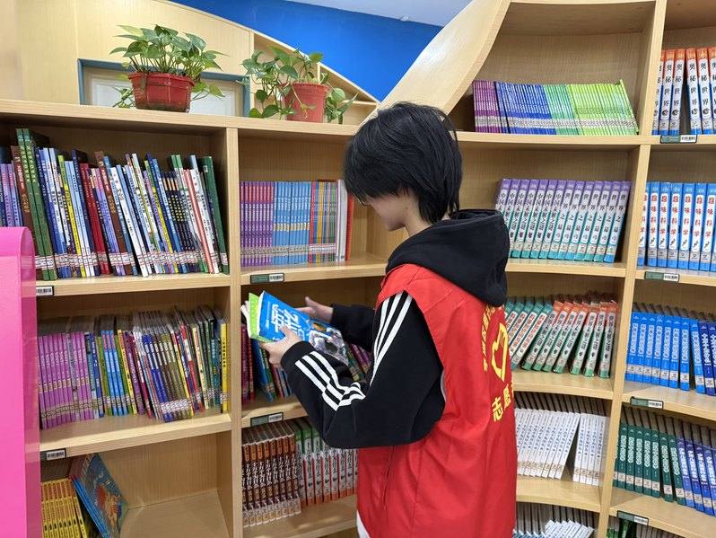 活动现场,志愿者们分工明确、配合默契,全身心投入各项服务工作。在亲子阅读区与图书借阅区,大家耐心为小读者答疑解惑,主动协助读者查找书籍;细心将归还图书按编号精准归位,认真梳理凌乱书架,确保排列规范有序;同时主动维护阅读秩序,营造安静、舒适、文明的阅读环境,用贴心服务传递书香温度。
