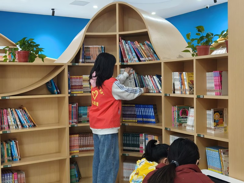 马龙妍同学在服务间隙翻开绘本,感慨仿佛与儿时的自己重逢,坦言此次活动既是一次服务他人的实践,也是一场与阅读、与童心的温暖邂逅。吴静怡同学表示,整理工作虽有些细碎,但看到孩子们专注阅读的模样便倍感充实,在反复整理中磨砺了细心与耐心,真切体会到助人的快乐。陈镜奕同学则分享了她的真实感受:原以为整理图书很简单,真正动手才发现,光是记住不同区域就够费劲的。有本小说被扔到科技区,她找了快十分钟才把它送回“家”。虽然站得腿酸背疼,但看到整整齐齐的书架,听到小女孩甜甜地说了声“谢谢姐姐”,心里一下子特别暖。